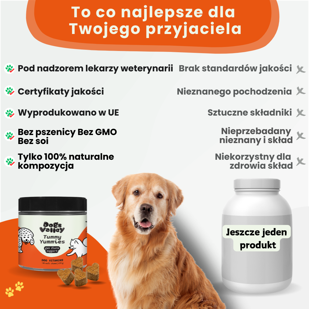 Stosuj Tummy Yummies, gdy Twój pies zaczyna produkować więcej gazu niż rurociąg gazowy albo gdy wciąga trawę szybciej niż kosiarka. Idealne rozwiązanie również wtedy, gdy kupa Twojego pupila bardziej przypomina abstrakcyjną sztukę niż zdrowe wypróżnienie!